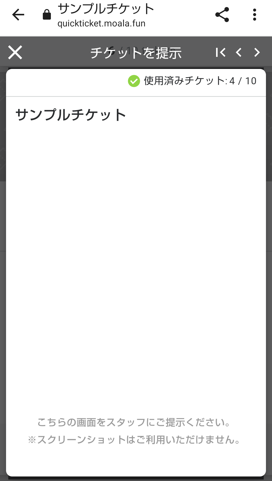 5. 表示された電子チケットの画面をスタッフに掲示