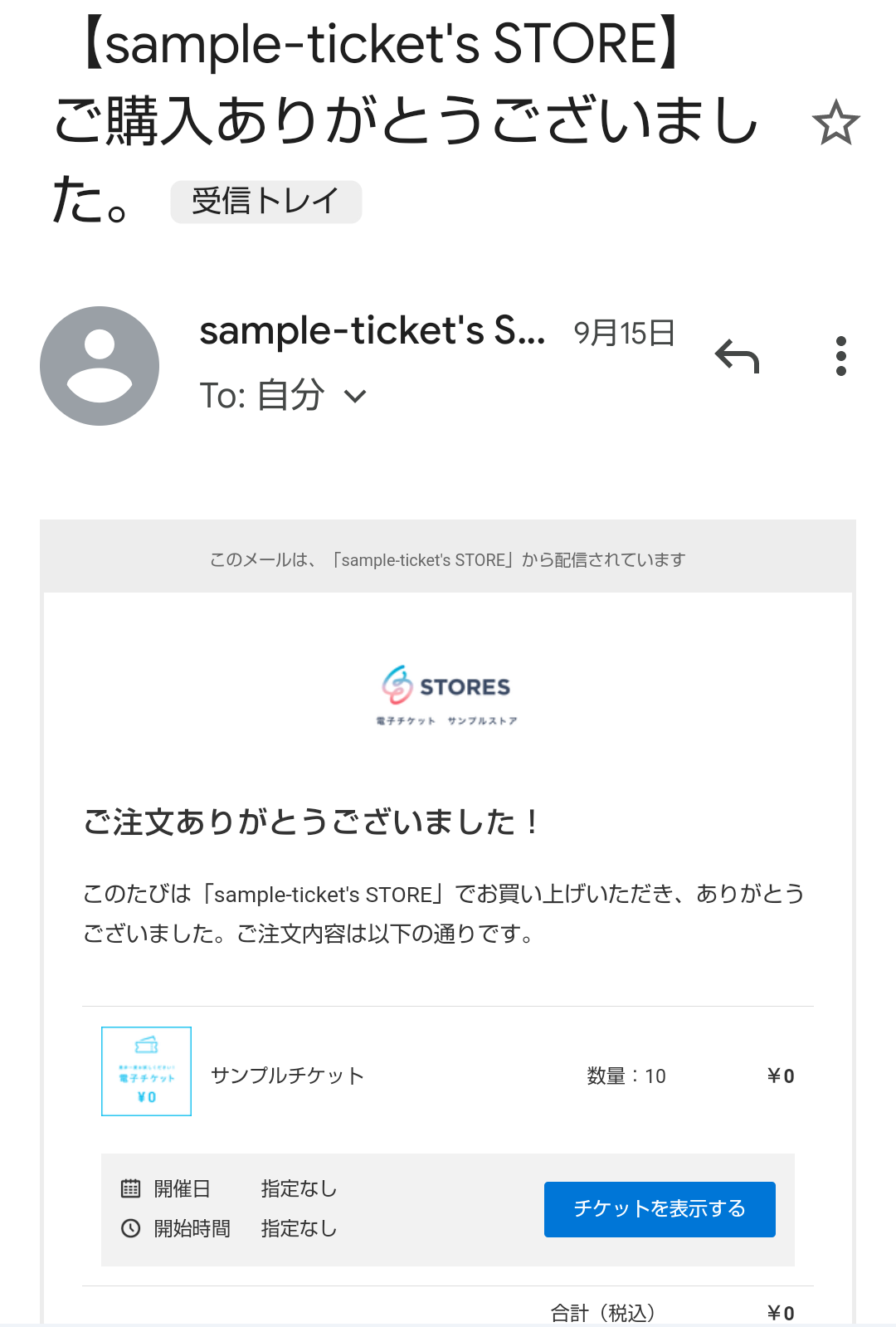 3. メール画面上の「チケットを表示する」ボタンをタップ