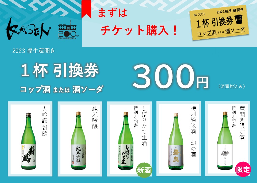 酒造蔵前の案内所に抽選チケットをご用意しております。